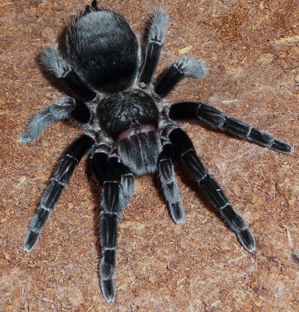 Comments: This is a stocky, medium built tarantula. It is easy to care for. After a fresh molt it is solid black. This species is not often seen in the hobby for sale.